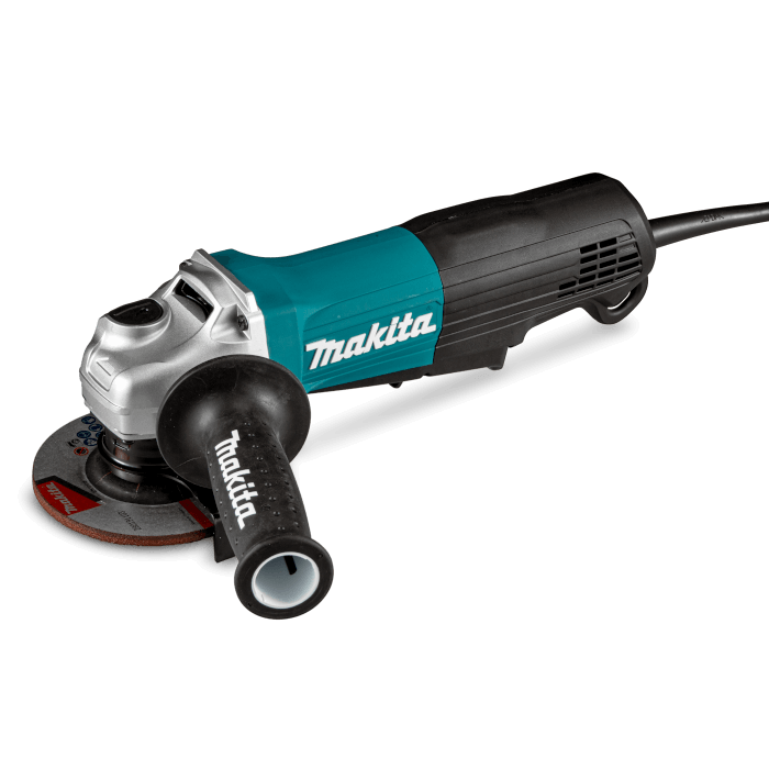 Amoladora angular cuenta con un motor de 1.300 W y utiliza discos de 115 mm (4-1/2”), alcanzando una velocidad sin carga de 11.000 rpm para un trabajo rápido y eficiente.